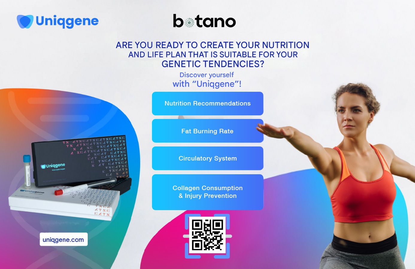 • COL1A1 - Type 1 Collagen: Understand how your body produces connective tissues like tendons and muscles. Learn your susceptibility to injuries and your recovery speed.