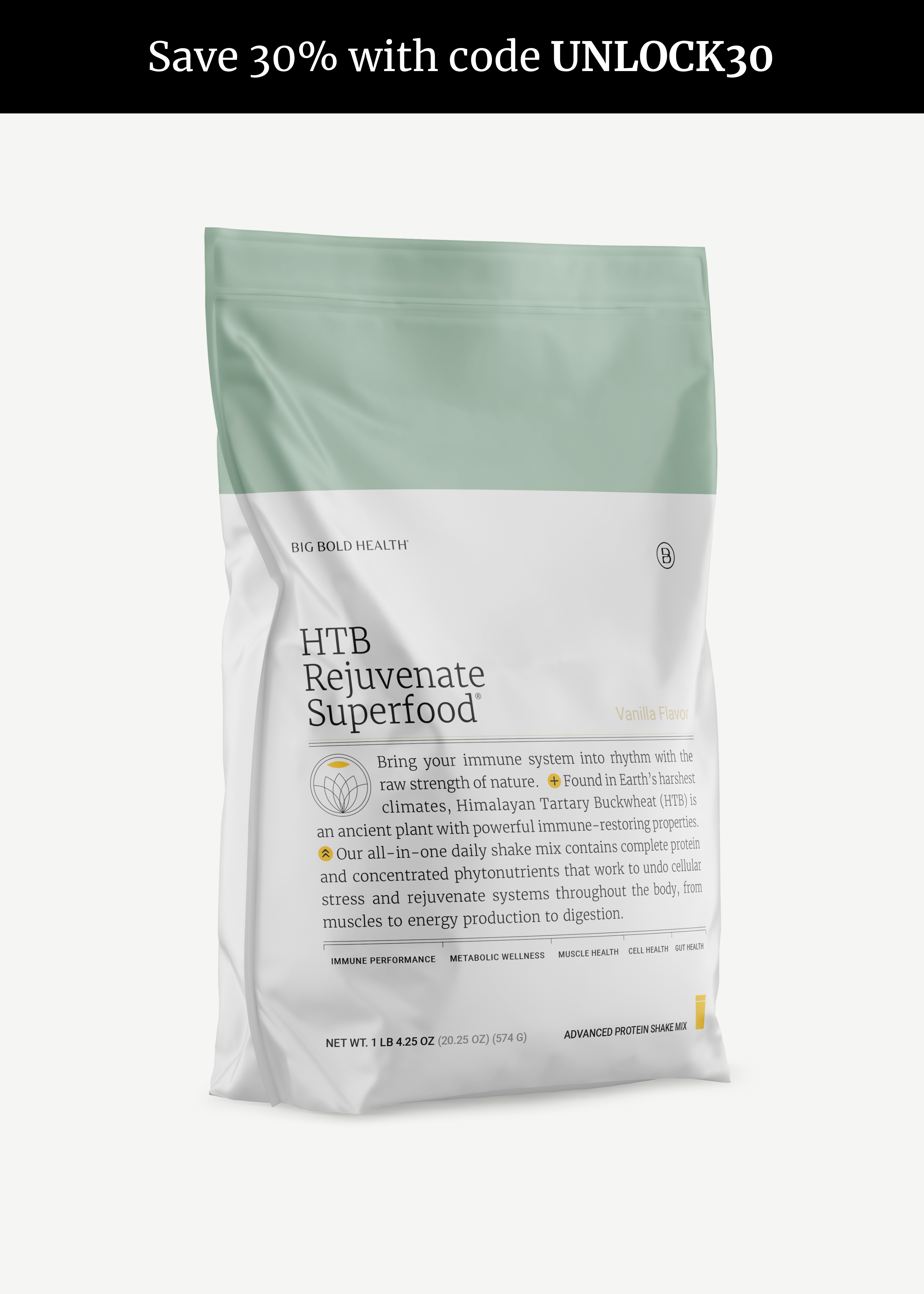 Found in Earth’s harshest climates, Himalayan Tartary Buckwheat (HTB) is an ancient plant with powerful immune-restoring properties. Our all-in-one daily Superfood contains complete proteins and concentrated phytonutrients that work to undo cellular stress and rejuvenate systems throughout the body. Now supercharged with 100% organic Himalayan Tartary Buckwheat sprout powder.