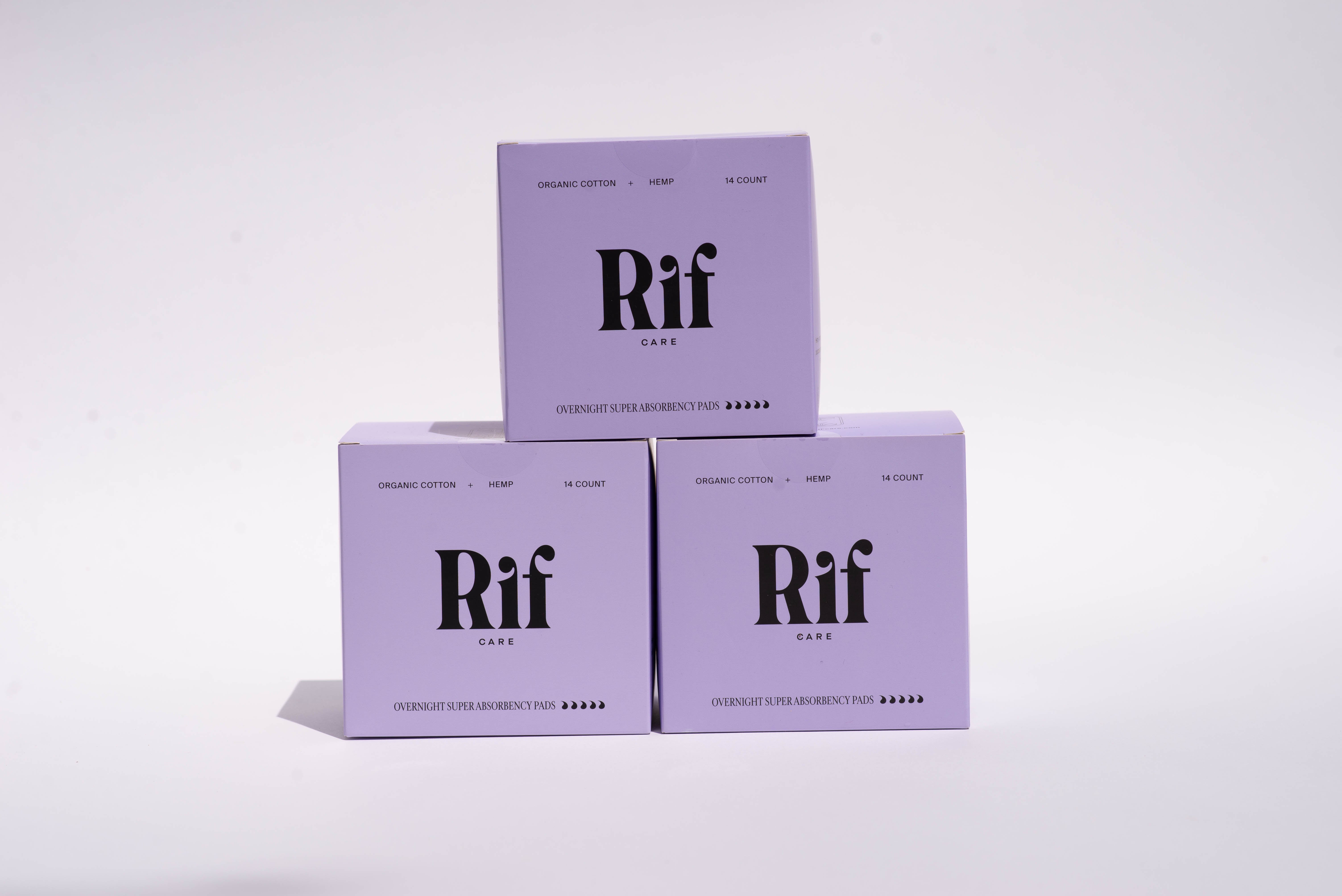 Upgrade your overnight self care with Rif Care's plant based hemp fiber pads! Ultra absorbent, naturally odor fighting and super soft for all night comfort.